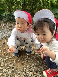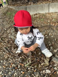 特養裏に着くとどんぐりや石を拾ったりと思い思いに楽しんでいましたよ♪