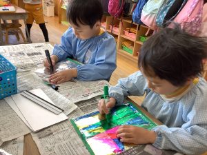 今日は12月の壁面制作を作っているところの様子をお伝えします🎵