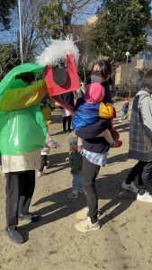 獅子舞が怖いお友達は、先生に抱っこしてもらって、頑張りました👏