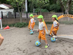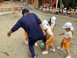 ボールがコロコロ転がってしまうと、大笑いのみんなです❣