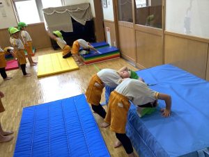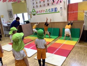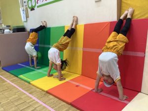 体育では、逆立ち歩き、前方回転に向けての練習が始まりました🤩🤩🤩
