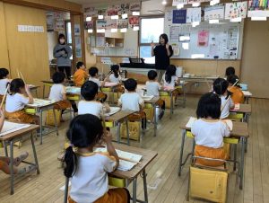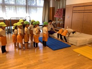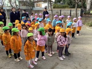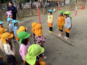 朝のマラソン、朝礼では、おうぎ組さんとバトンタッチしてお当番をしています✨