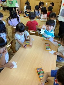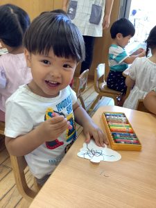 好きな色で自由にお絵かきを楽しみましたよ😆出来上がると「かんせーい!」と見せてくれる姿が可愛らしかったです💕
