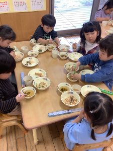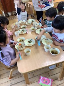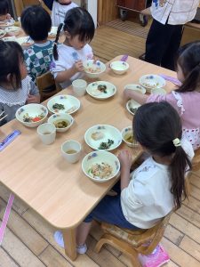 箸の練習では、最初の3分間は箸で食べる練習をしてそこからはフォークで食べるか、そのまま箸で食べるか聞いて行っています🥢😊