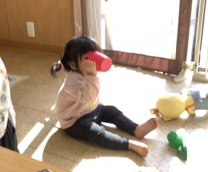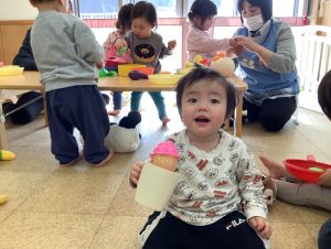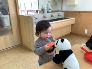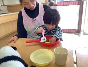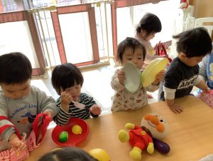 今日はつぼみ組のお部屋でおままごとを楽しみました。