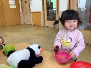 フライパンでお料理したり、ぬいぐるみにご飯をあげたりして楽しんでいましたよ。
