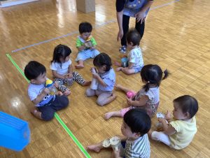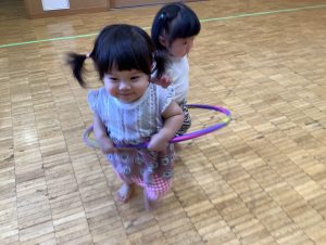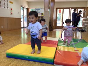 保育園に戻ってランチルームでフラフープやマットで楽しく遊びました🤗