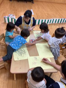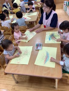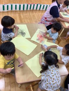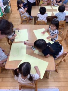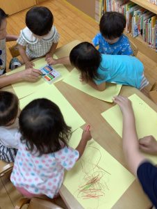 好きな色のクレヨンを選んで自由に書いていましたよ🎶