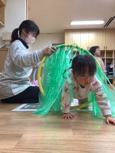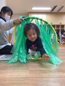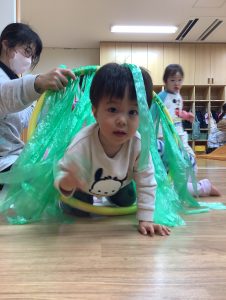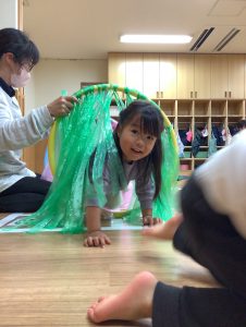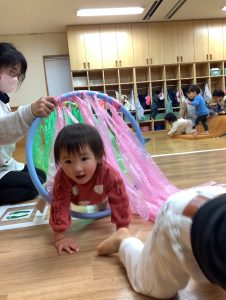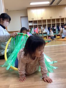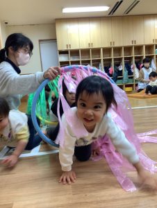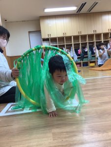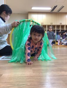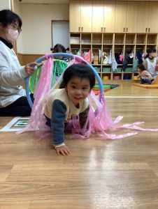 フープのトンネルを潜ると自然と笑顔で出てくるみんなです💓
