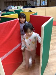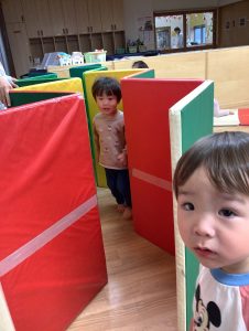 お部屋の中にマットなどを並べてぐるぐる。。。🤩