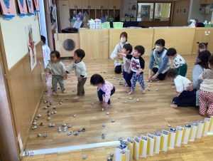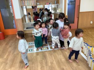 イラストを見ながら節分についてのお話しを聞いたり、鬼のパンツや豆まきの歌を手を動かしながら楽しんでいましたよ🎶