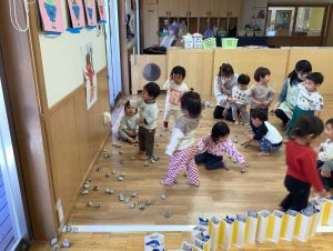 お部屋に戻ってからは新聞紙の豆で豆まきをしました‼