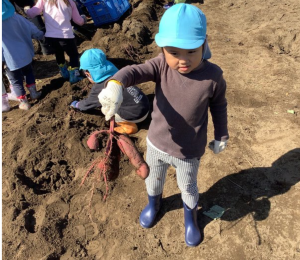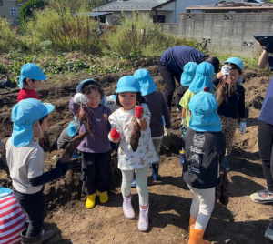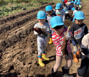 「さつまいも何個取れるかな?」とドキドキしながらバスに乗っていました💓