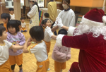 こんにちは!わかば組安岡です😊 本日は、クリスマス会の様子をご紹介します!🎄🎅🏻💗 待ちに待ったクリスマス会🎶 朝から、「サンタさんにぬいぐるみもらったよ」「ブロックもらったよ!」とお友だちとプレゼントトークが大盛りだったわかば組の子どもたち! 保育園のクリスマス会では、なんとサンタさんと触れ合いました😳🙌💖💖💖 頭を撫でてもらったり、ハイタッチしたり……。 ニコニコ嬉しそうな笑顔がたくさん見られましたよ🌟![]()