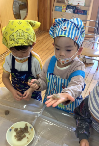 「柔らかいね」「にゅるにゅるしてかたい」と感触や匂いを楽しんでいましたよ😊💓