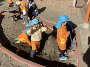 続いて園庭遊び🙌✨✨ サッカーをしたり砂場でお山を作ったりと友だちと仲良く遊びました😆☀️💗