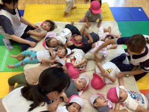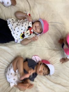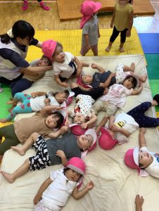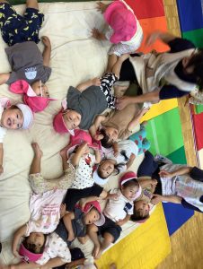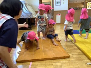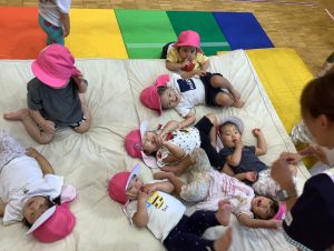広いお部屋にたくさんのマットで嬉しそうな子どもたち💓