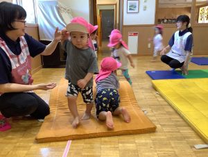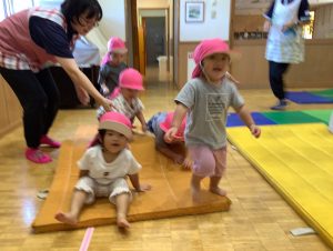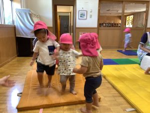 少しの段差なら手を使わずに歩くことができるようになり心も身体も成長中のはな組さんです💕