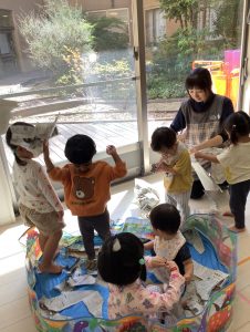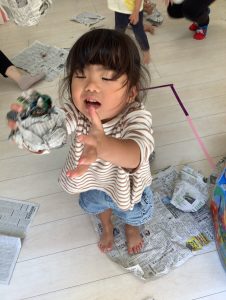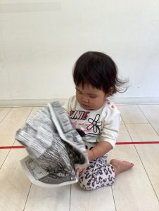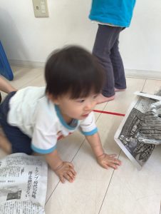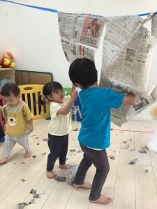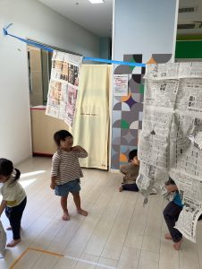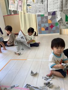 こんにちは😊第二保育園 有本です🍀 今日は、新聞紙遊びの様子をお知らせします☀