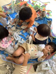 新聞紙遊びは、発達に必要な手指の感覚や動きを経験できる、すごい遊びなんです‼